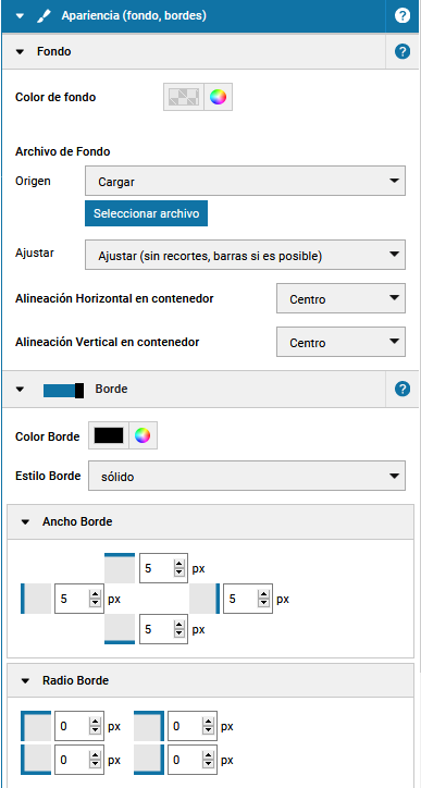 Apariencia (fondo, borde) le permite ajustar el fondo de un elemento y darle un borde.
