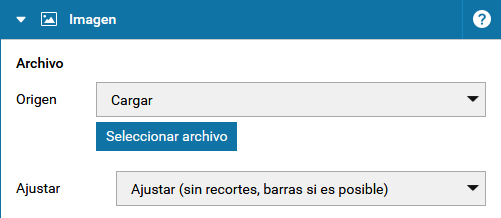 Puede seleccionar si desea Cargar un archivo de imagen de los formatos mencionados o si desea usar un archivo ya cargado desde otro proyecto, si está habilitado en la Ajustes del proyecto .