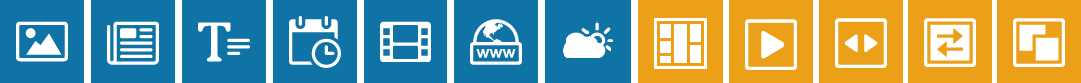 Cuando crea un nuevo proyecto, el Editor de SiteKiosk Online ofrece una gama de elementos estándar que puede utilizar para personalizar su contenido. Al presionar el botón + más, aparecerá el cuadro de diálogo Nuevo elemento para el contenedor que enumera estos elementos para que pueda elegir.