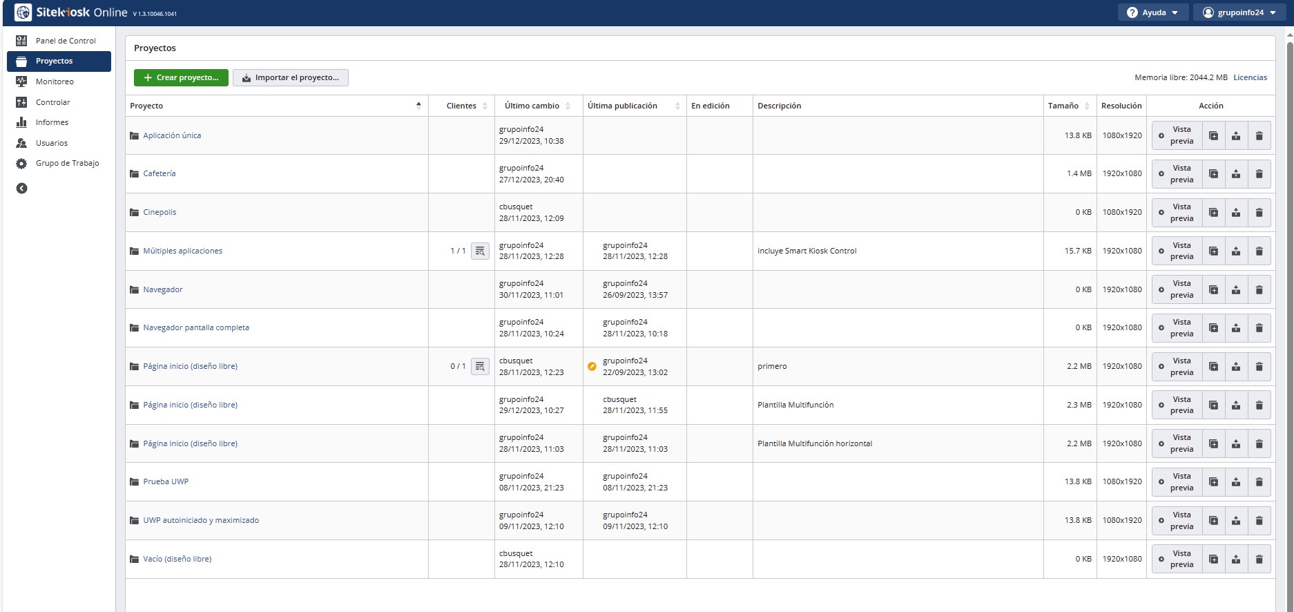 Home > SiteKiosk Online- plataforma servidor > Proyectos