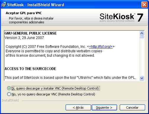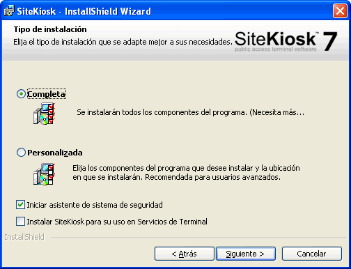su instalación se realiza en el momento de instalación de SiteKiosk. Marque por tanto esta opción para evitar