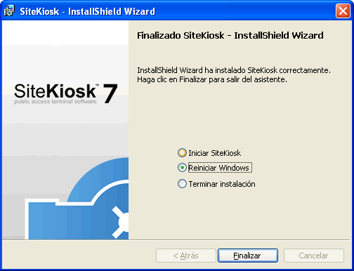 SiteKiosk se instala en muy pocos minutos. Durante la instalación se creará la cuenta de sistema para usuario limitado SiteKiosk.