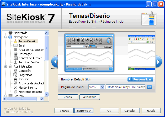 escritorio como quiera. SiteKiosk le proporciona varias plantillas o skins para el navegador y también para la página de inicio. Puede:
