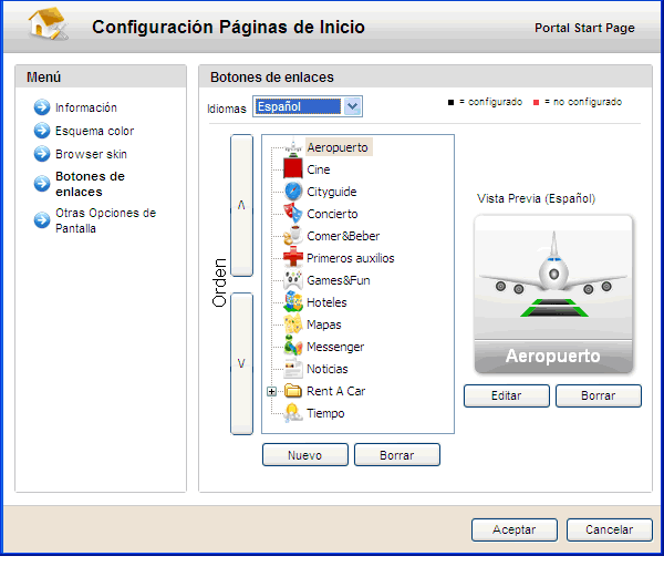 - Definir otros enlaces y características de la plantilla, incluido un menú personalizable multinivel con tantos iconos y enlaces como quiera para cada idioma
