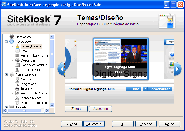 escritorio como quiera. SiteKiosk le proporciona varias plantillas o skins para el navegador y también para la página de inicio. Puede:
