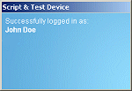 For reasons of simplicity, we used the scripting & testing device dialog box (defined in the skin definition) to test the implementation of the device.