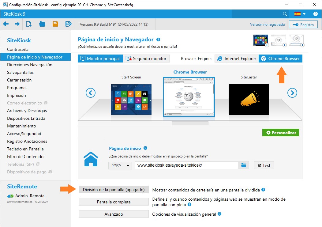 El funcionamiento es exactamente igual ya que tanto SiteRemote como SiteCaster CMS son compatibles con SiteKiosk Windows ó Android, a pesar de las grandes diferencias de ambos sistemas operativos.