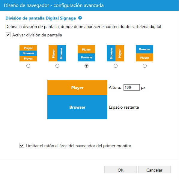 Al variar las dimensiones, SiteKiosk tendrá en cuenta el tamaño total disponible de la pantalla donde esté instalado.
