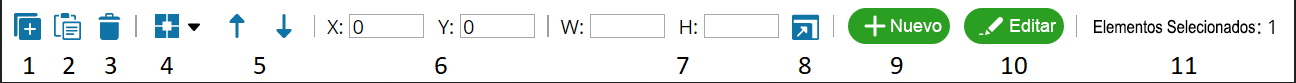 - El botón Editar abre el cuadro de diálogo de propiedades de un elemento seleccionado.