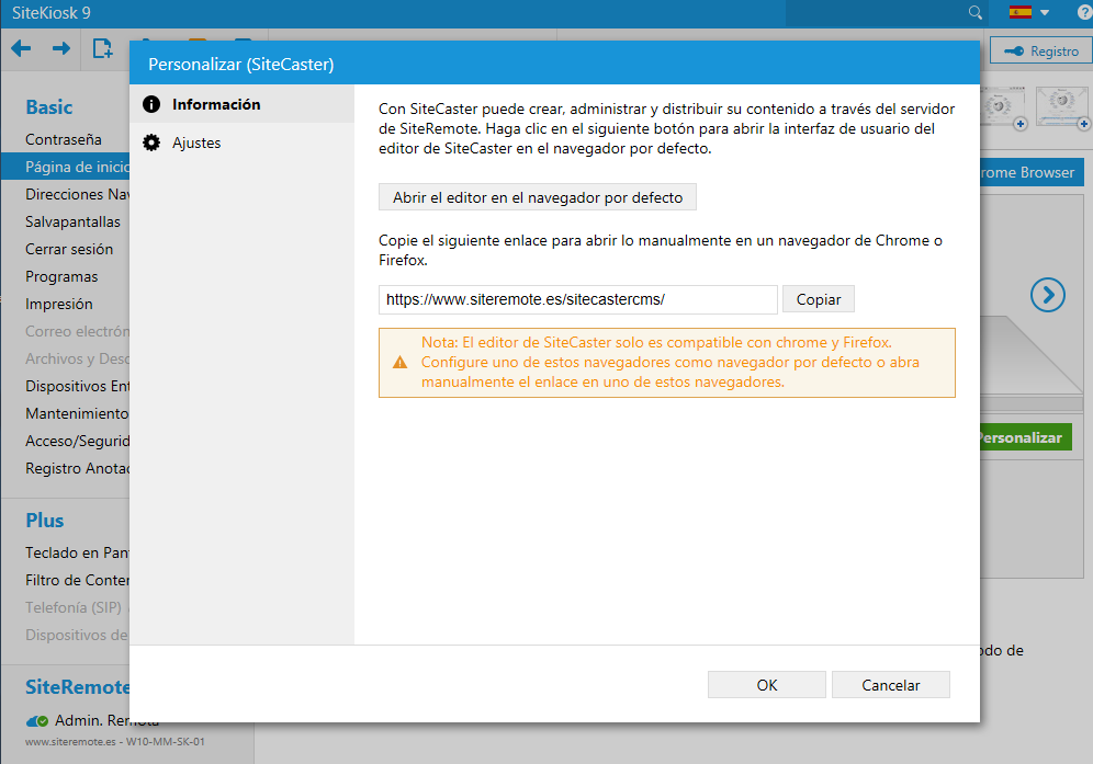 1.2 Arranque del Editor SiteCaster via el asistente de configuración de SiteKiosk