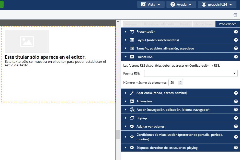Home > SiteKiosk Online- plataforma servidor > Proyectos > Elementos de un proyecto > Contenedores > Contenedor RSS