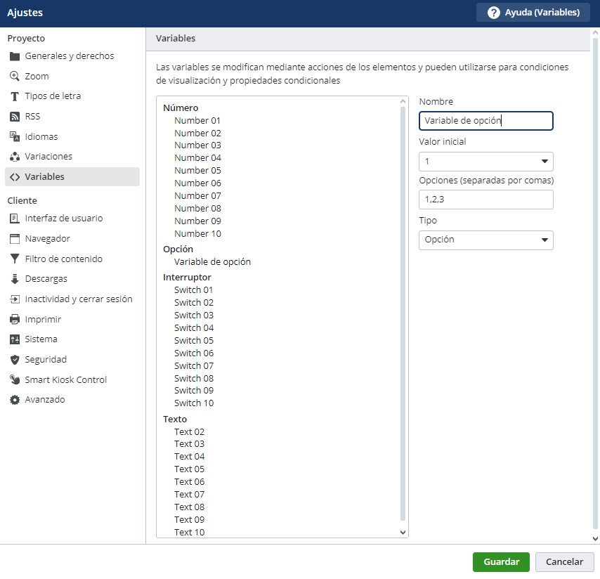 Estas variables nos servirán para definir condiciones personalizadas en los elementos de los proyectos.