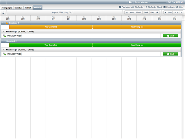 Vea el estado de todas las campañas de un vistazo. Inicie o detenga la reprodución para un equipo determinado con sólo un clic.